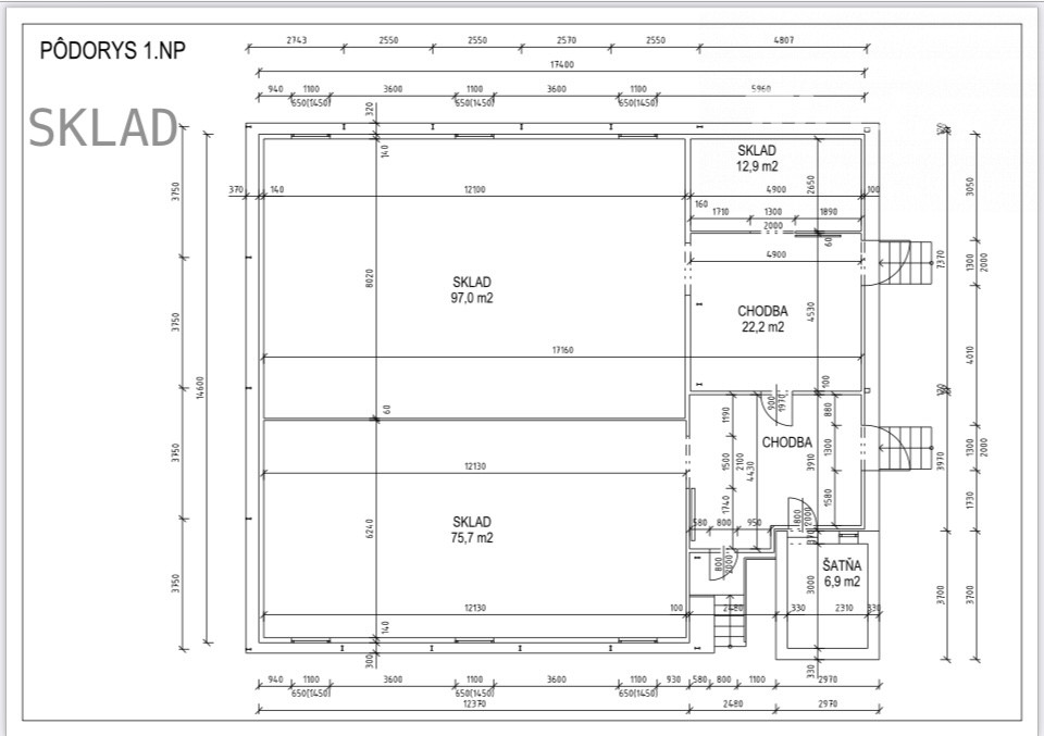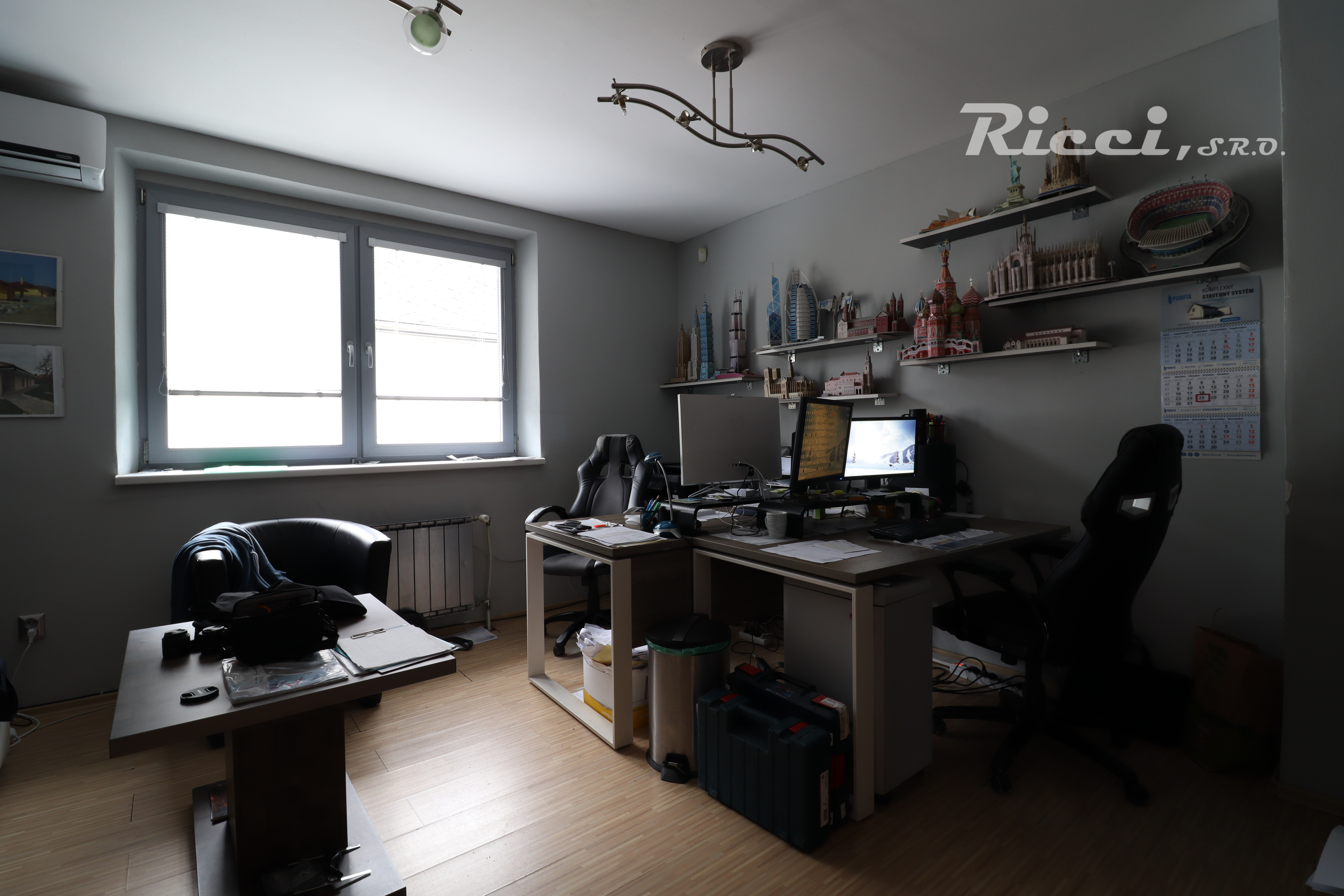 Poschodie: 2x kancelária, spoločenská miestnosť, kuchyňka, kúpeľňa, sociáne zariadenie