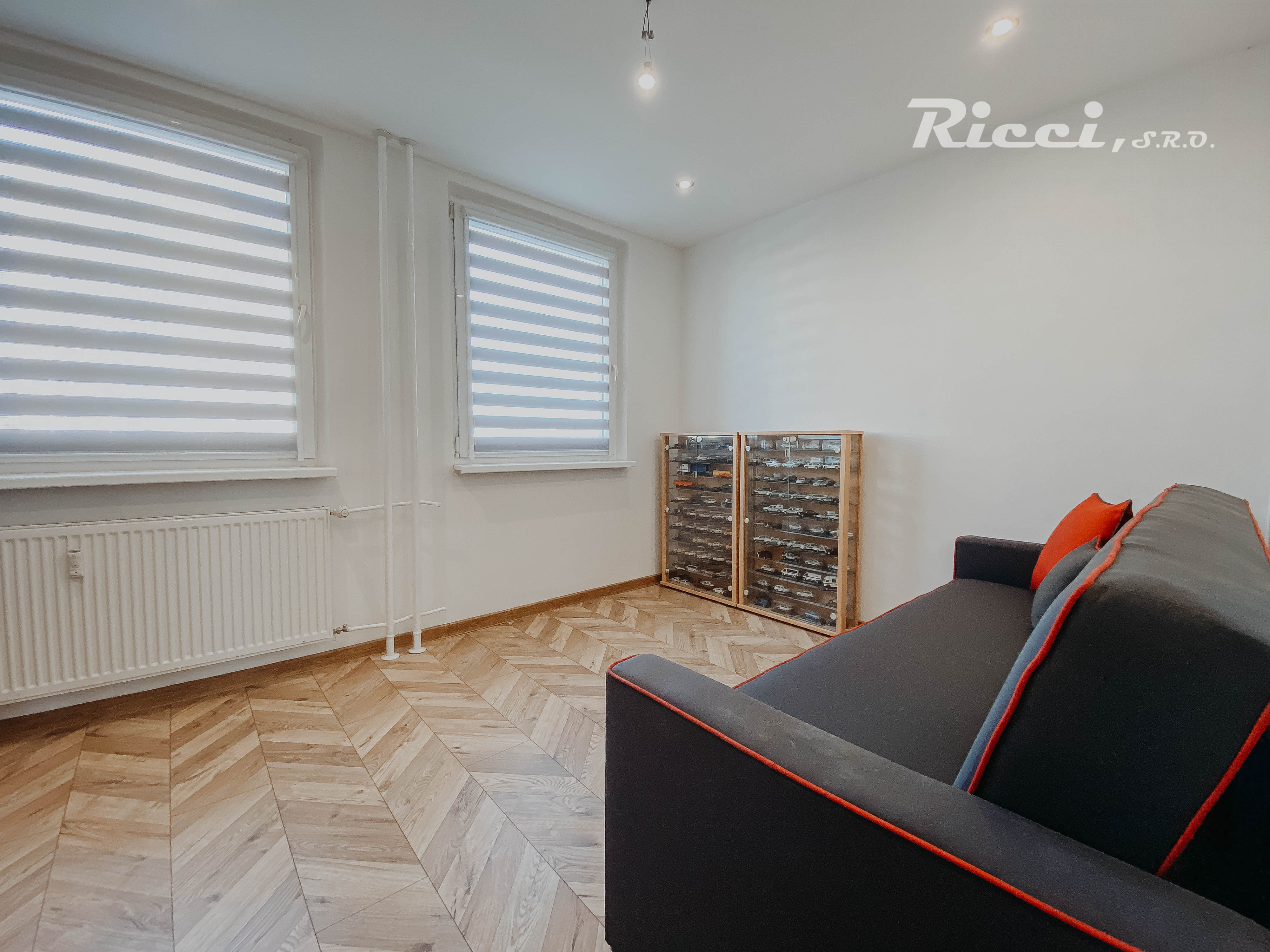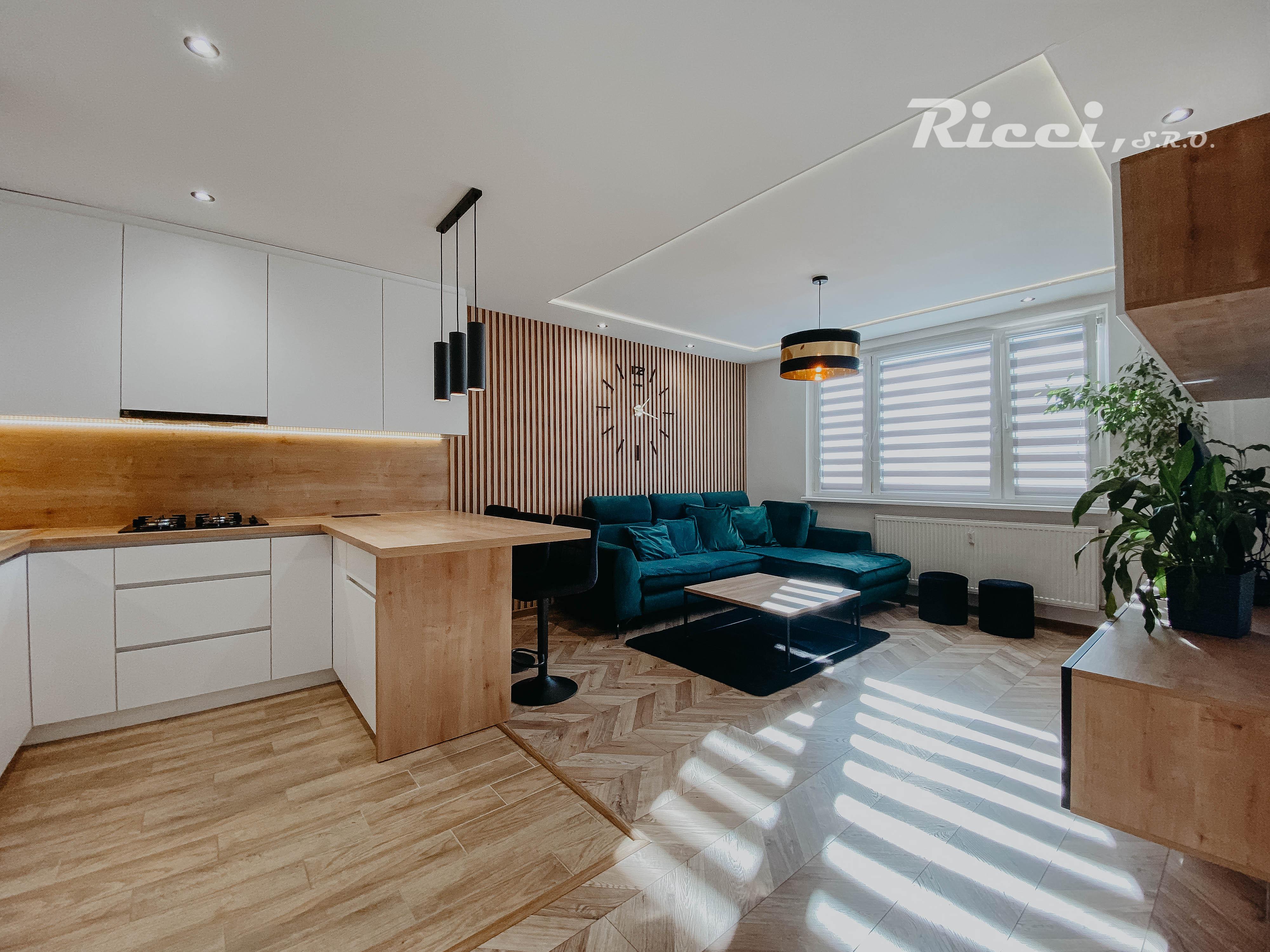 Byt v roku 2022 prešiel kompletnou rekonštrukciou a zmenou dispozície a predáva sa kompletne zariadený (okrem TV). Obývačka je prepojená s kuchyňou (kuchynská linka vyrobená na mieru). Samostatná toaleta, v kúpeľni je vaňa. V sprálni sa nachádza vstavaná šatníková skriňa, v predsieni vstavaná skriňa s botníkom.....