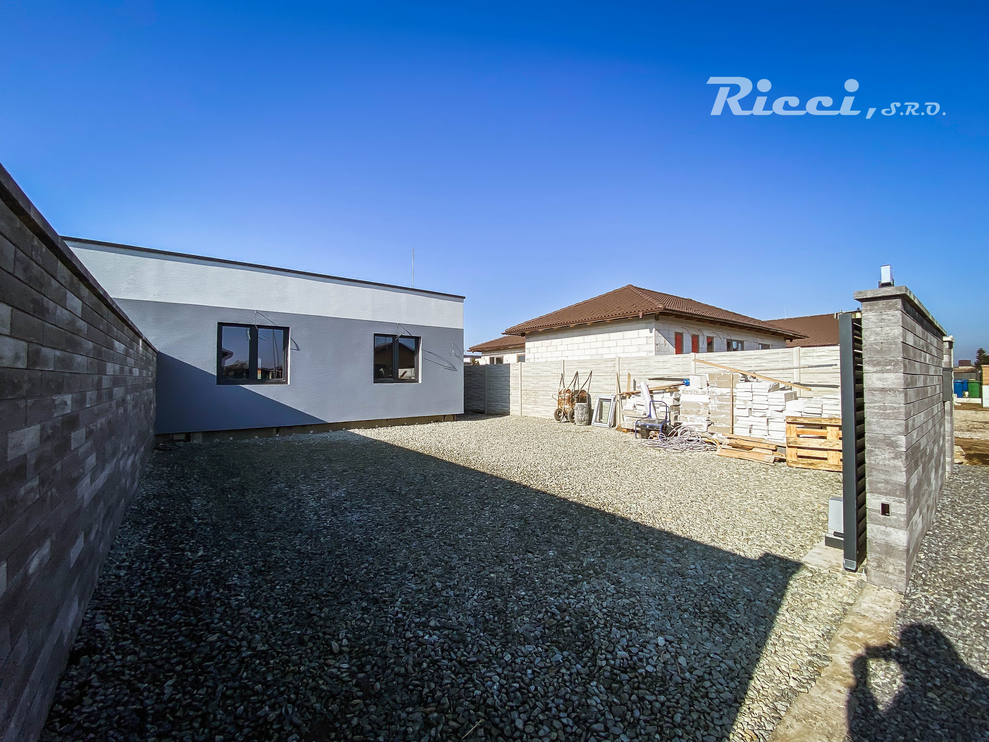 Technické parametre: v celom dome je podlahové kúrenie (vodovodné na elektrické vykurovanie), v dome plyn nie je, na pozemku je žumpa avšak obec ide robiť kanalizáciu a dokončenie asfaltovej cesty, vodovod nie je, dom je napojený na vŕtanú studňu o hĺbke cca 13 metrov. Zateplenie domu je 15 kou polystyrén. Na ulici je natiahnutá oprika. Veľká posuvná brána ako aj vstupná bránička sú hliníkové.
